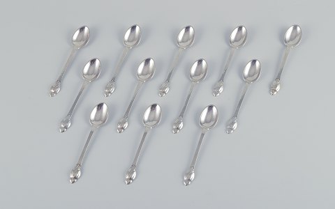 Evald Nielsen No 6, et sæt på tolv kaffeskeer i tretårnet sølv (830).