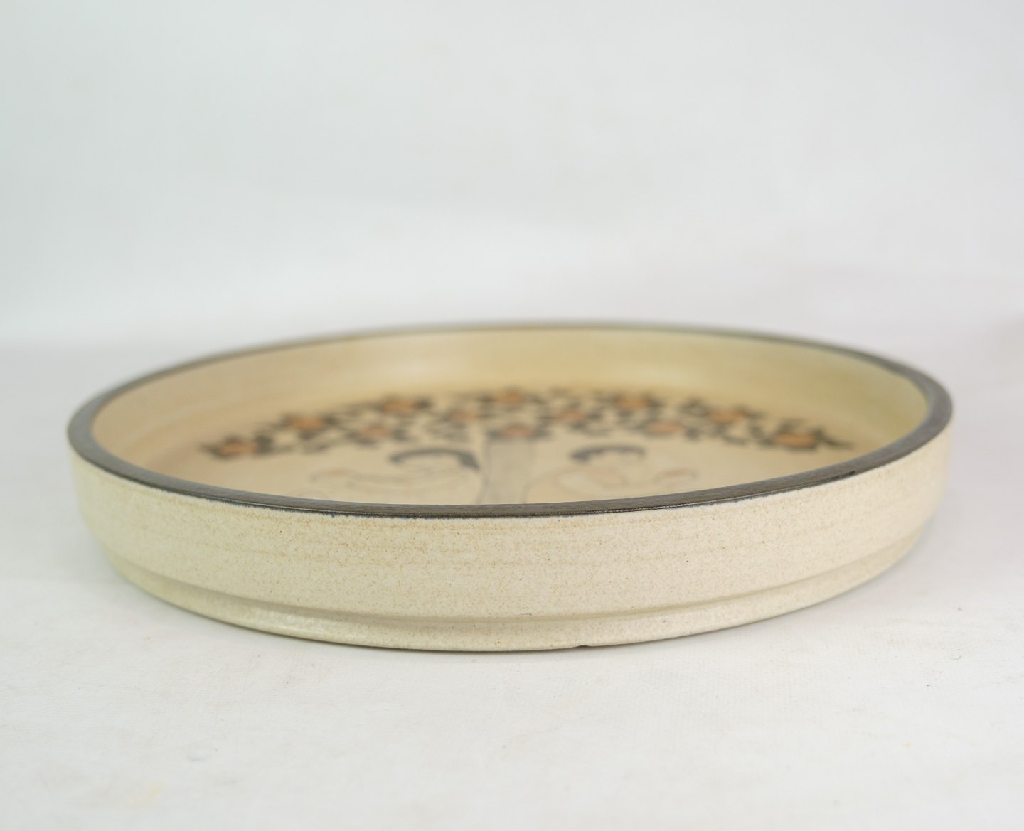 Rundt keramik fad af Herman Kähler med motiv af Adam og Eva. Flot stand uden skader.