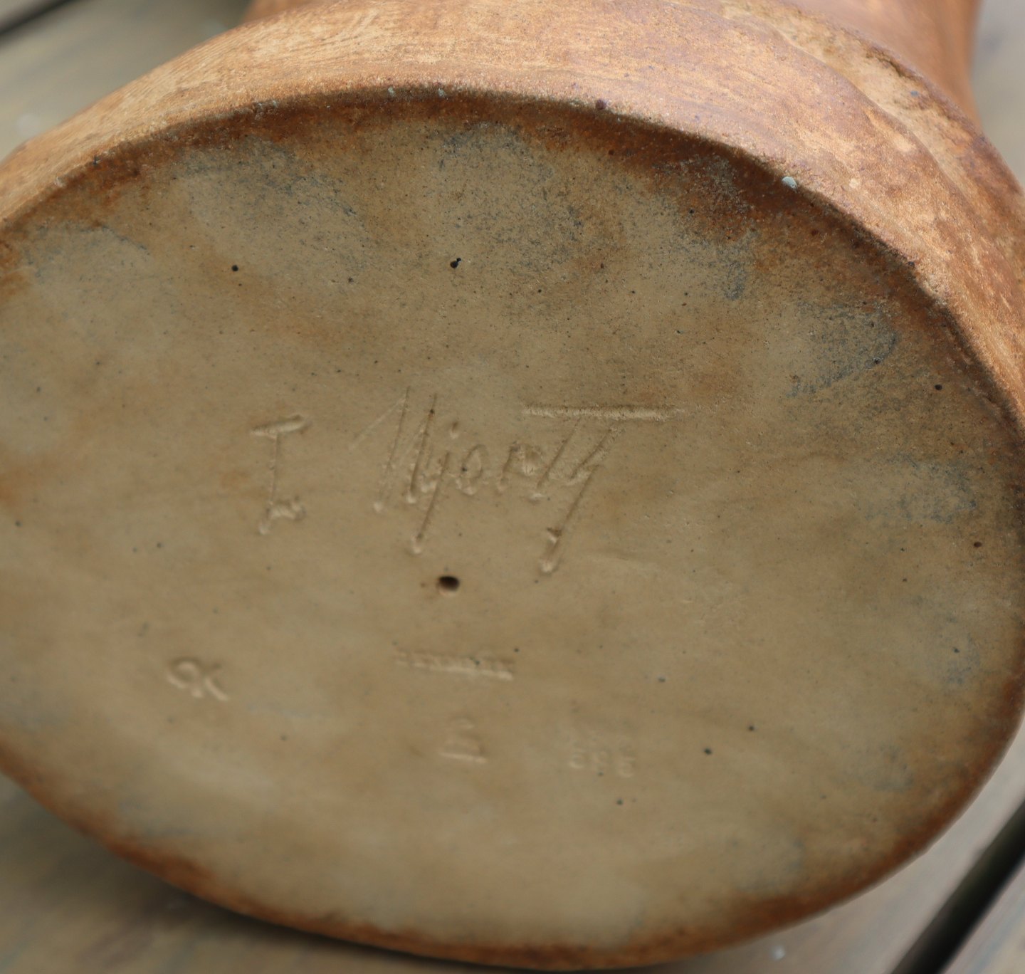 Kæmpe Terrakotta figur L. Hjorth 393 Stående kvinde med krukke 73 cm Gertrud Kudielka Terrakotta i hel og fin stand