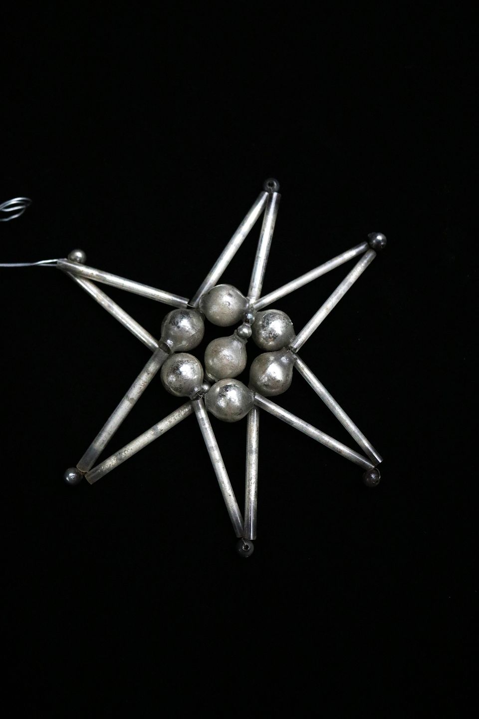 Juletræspynt i form af julestjerne af små glas perler fra år 1900-20.