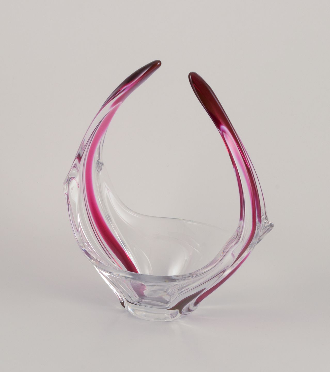 Val St. Lambert, Belgien. Stor skål i kunstglas. Klart glas med violet stribe. Art Deco.