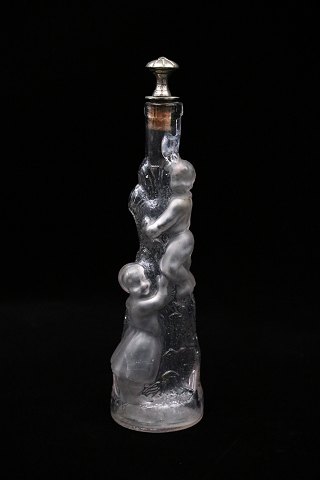 Dekorativ , gammel mundblæst glas karaffel med motiv af børn der kravler op af træstamme...