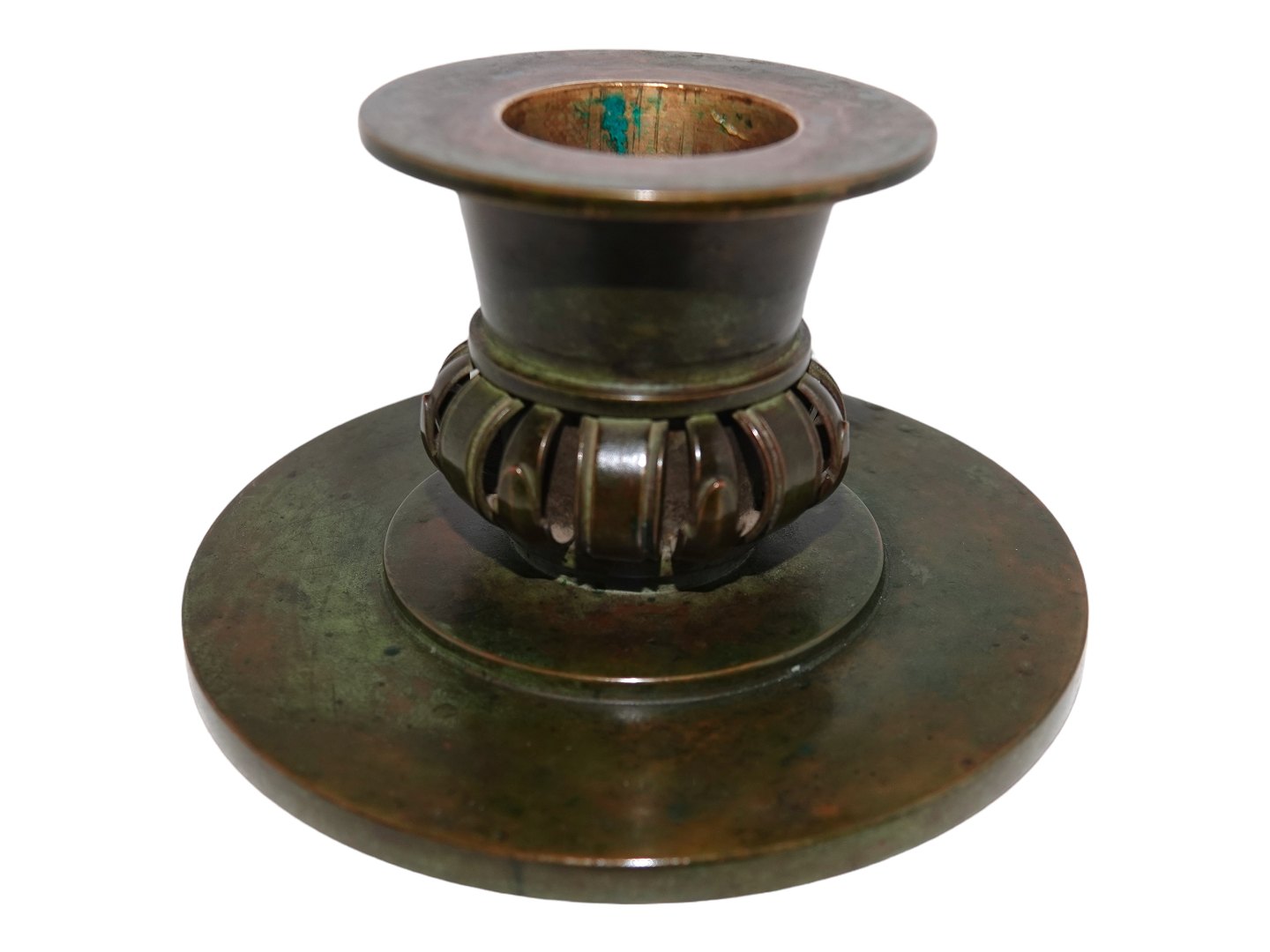 Par store, lave lysestager i bronze til store stearinlys fra ca. 1920 til 1930.