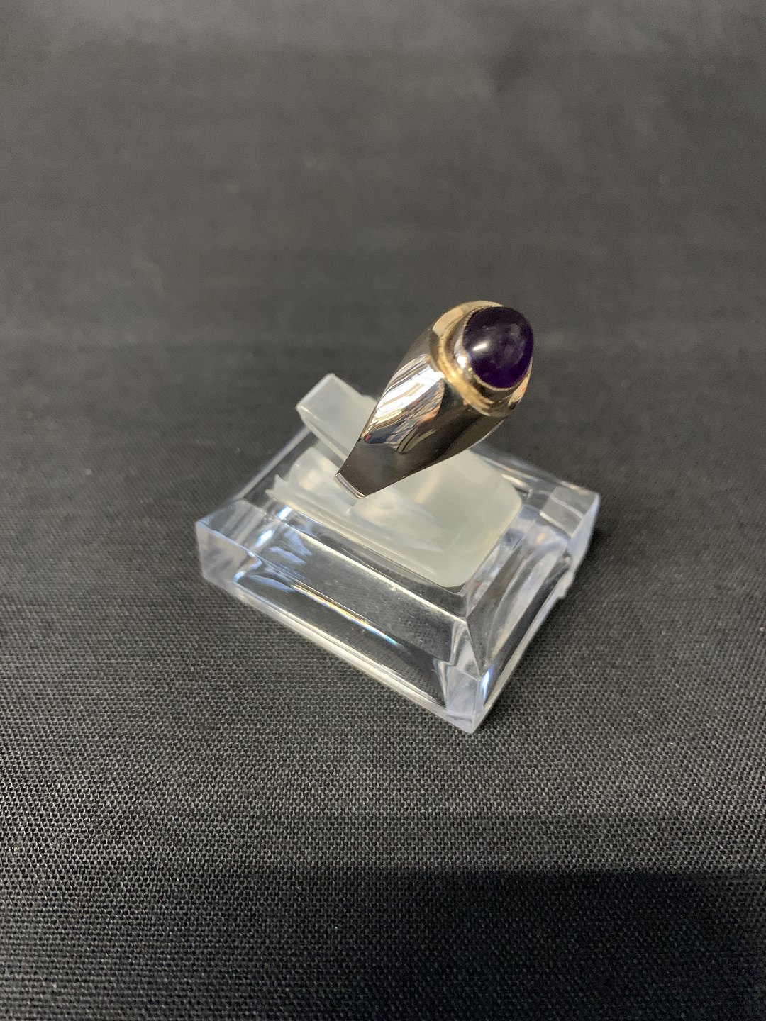 Nydelig og klassisk damering med flot amatyst. Ringen er smedet i 8 karat guld, og er med en diskret struktur der giver ringen et elegant og klassisk look.