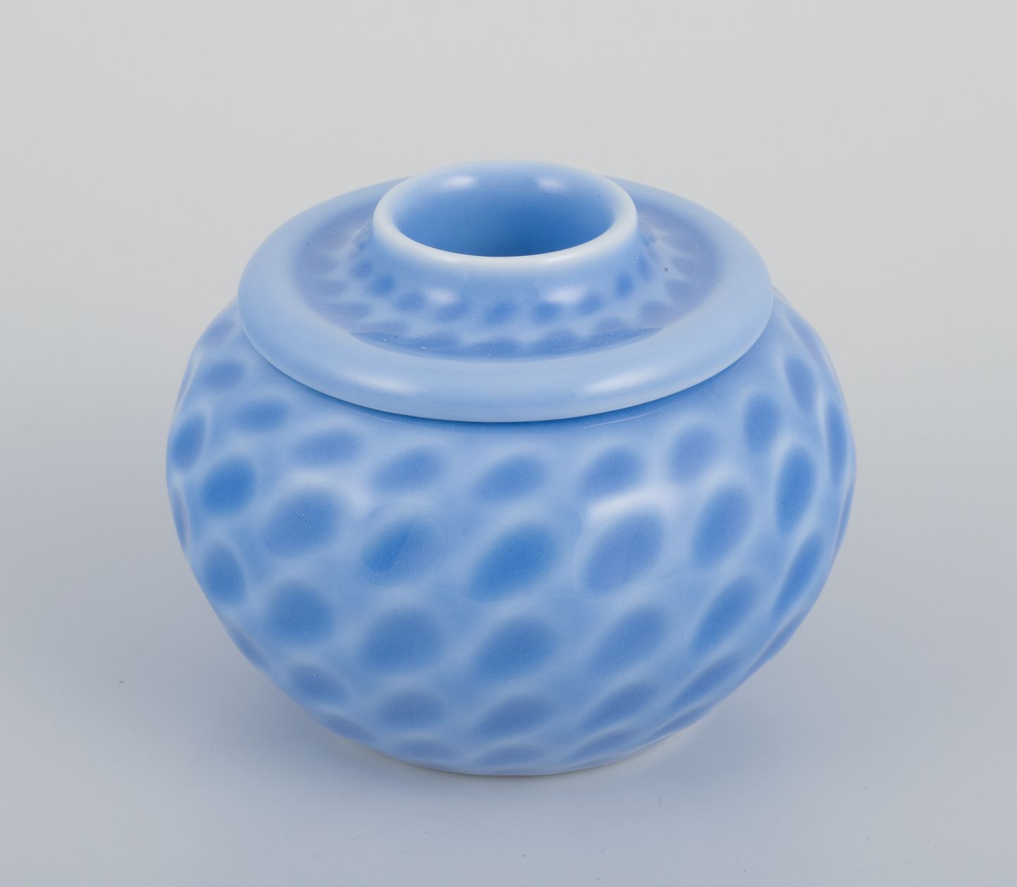 Glasur i blå nuancer. Dråbeformet dekoration.