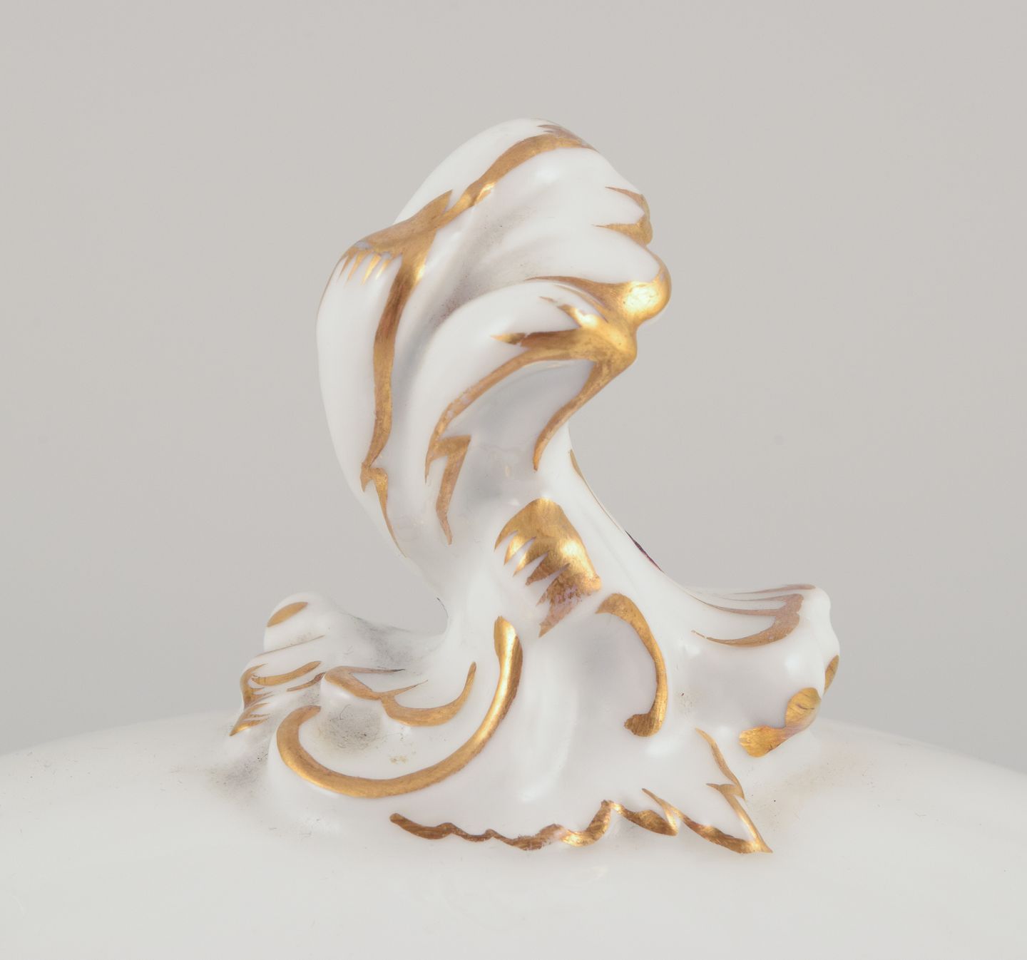 Royal Copenhagen Saksisk Blomst. Stor oval lågterrin i porcelæn. Håndmalet med polykrome blomster. Guldkant.