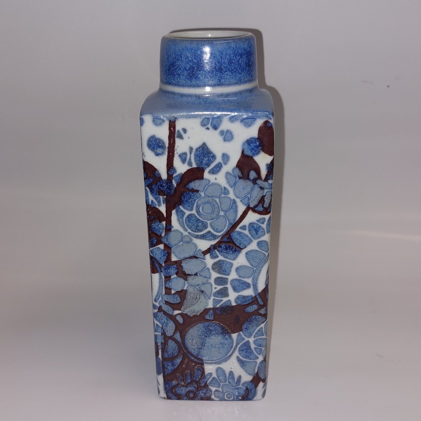 Johanne Gerber: Firkantet vase i fajance fra Aluminia fabrikken med modelnummer 3259. I god stand. 1. Sortering. H. 22,2 cm.