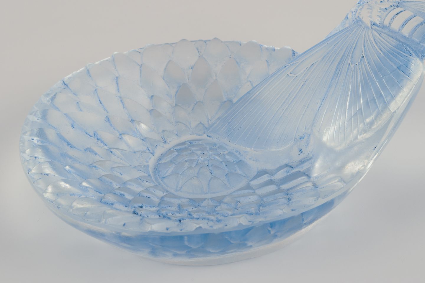 Tidlig "Dahlia et Papillon" skål i blåt kunstglas.
