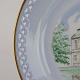 Dessert tallerkne i porcelæn med gylden perforeret kant med motiv af Eremitageslottet.