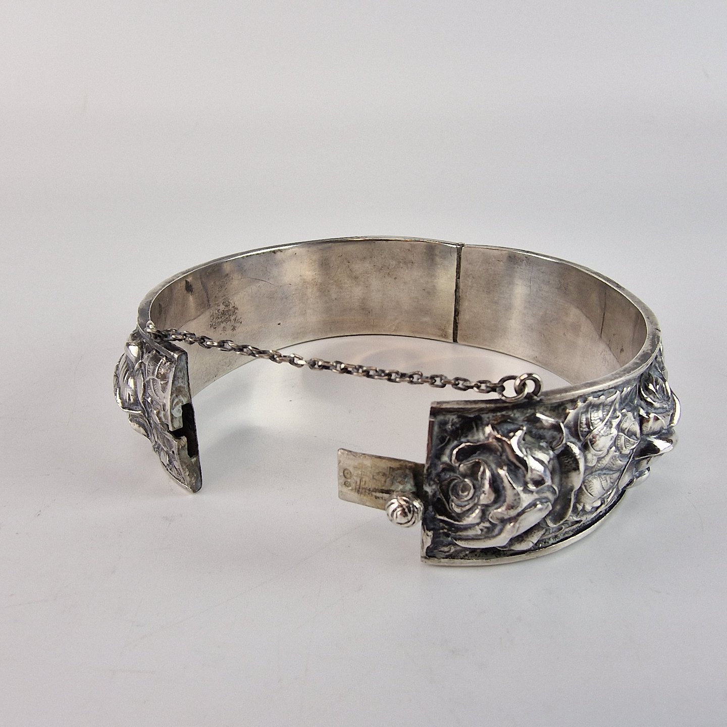 Ovalt armsmykke dekoreret med roser. Armbåndet har en sikkerhedslås på, og er svensk