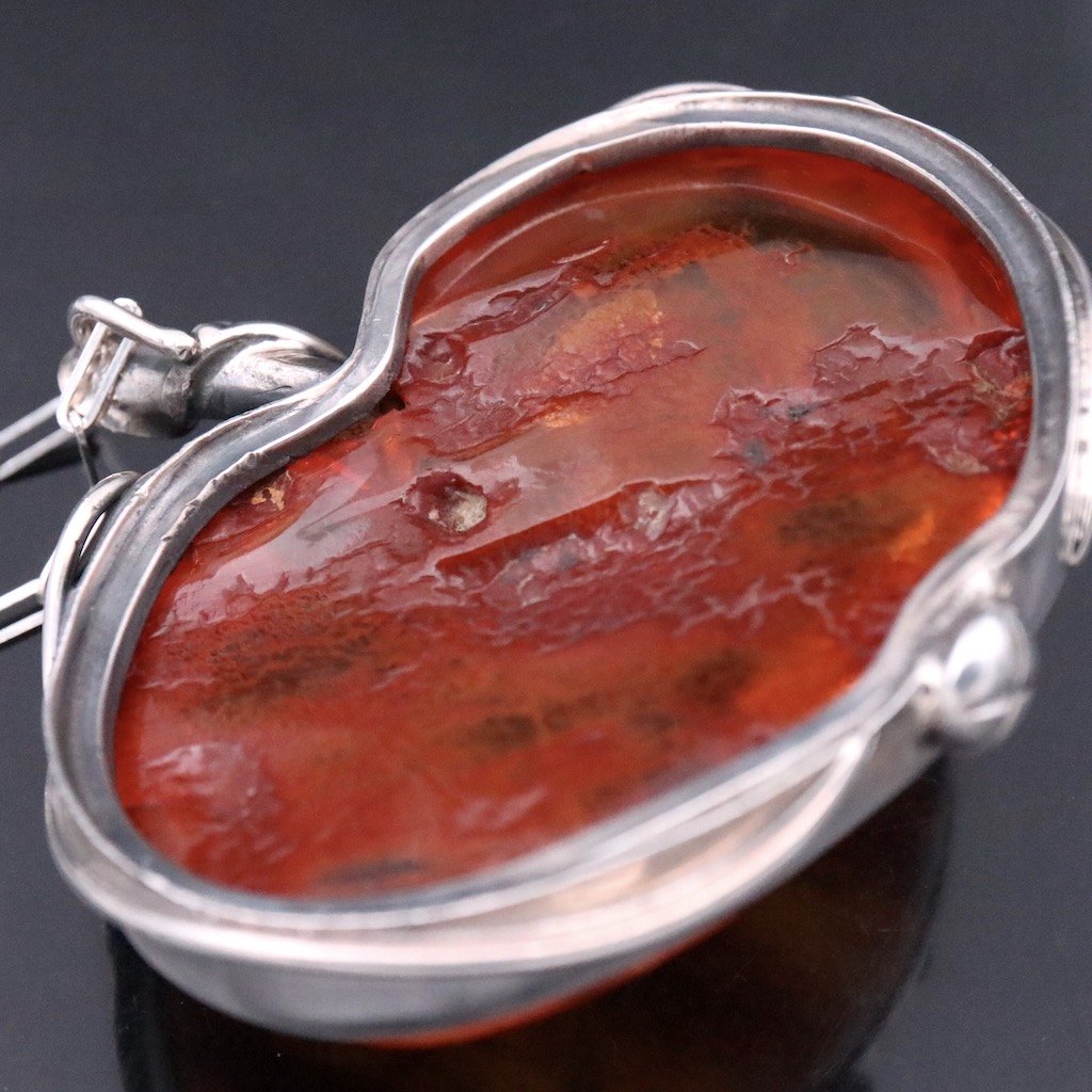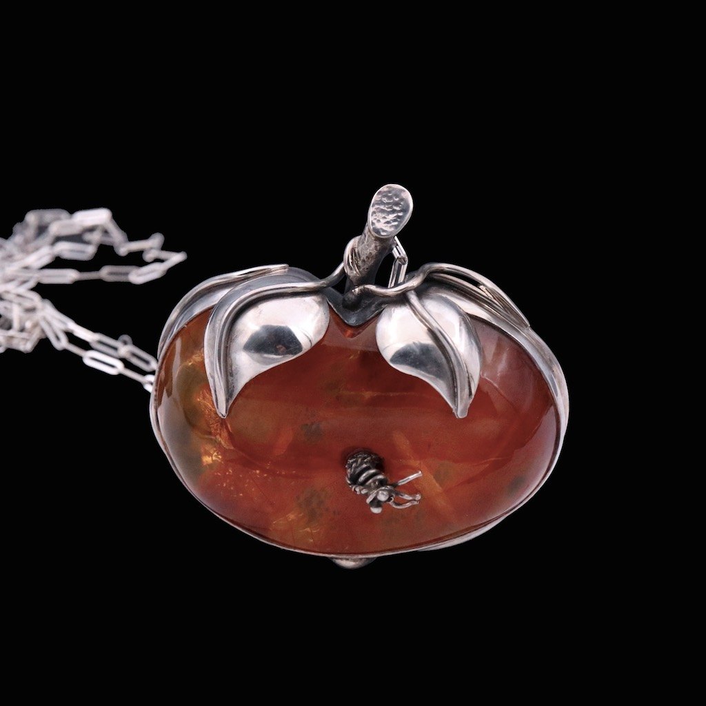 Stort æble vedhæng i sterlingsølv med rav.