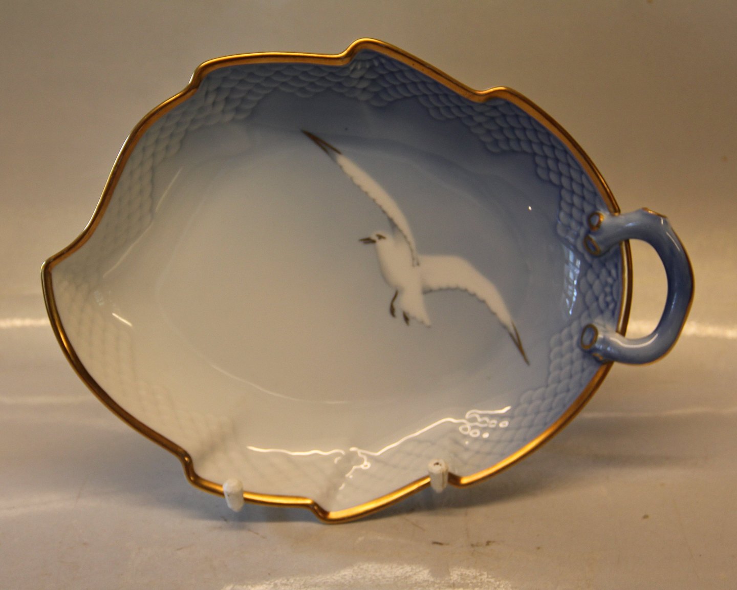 Bing & Grøndahl Mågestel med guldkant. 199 Bladformet assiet 25 cm (357) I hel og fin stand