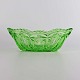 Skål i presset grønt glas med blomstermotiv. Navngivet Rolf. Blev produceret i 1934