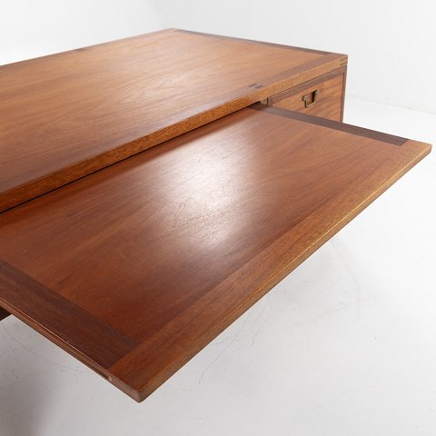 BM 66 - Skrivebord i mahogni med to skuffemoduler med skuffer og messinghåndtag.