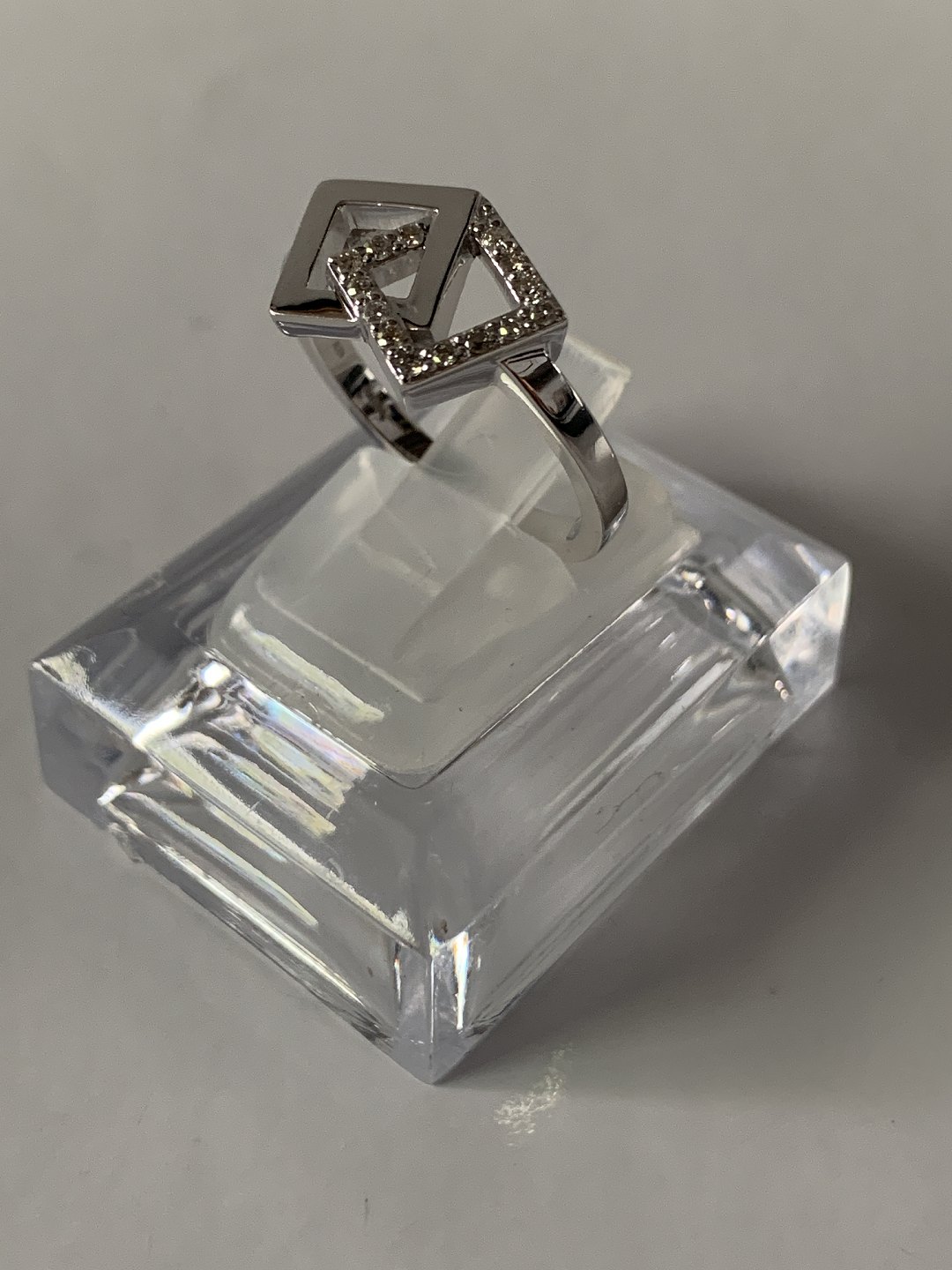 Damering i 14 karat hvidguld, med indlagt brillanter. Størrelse. 56