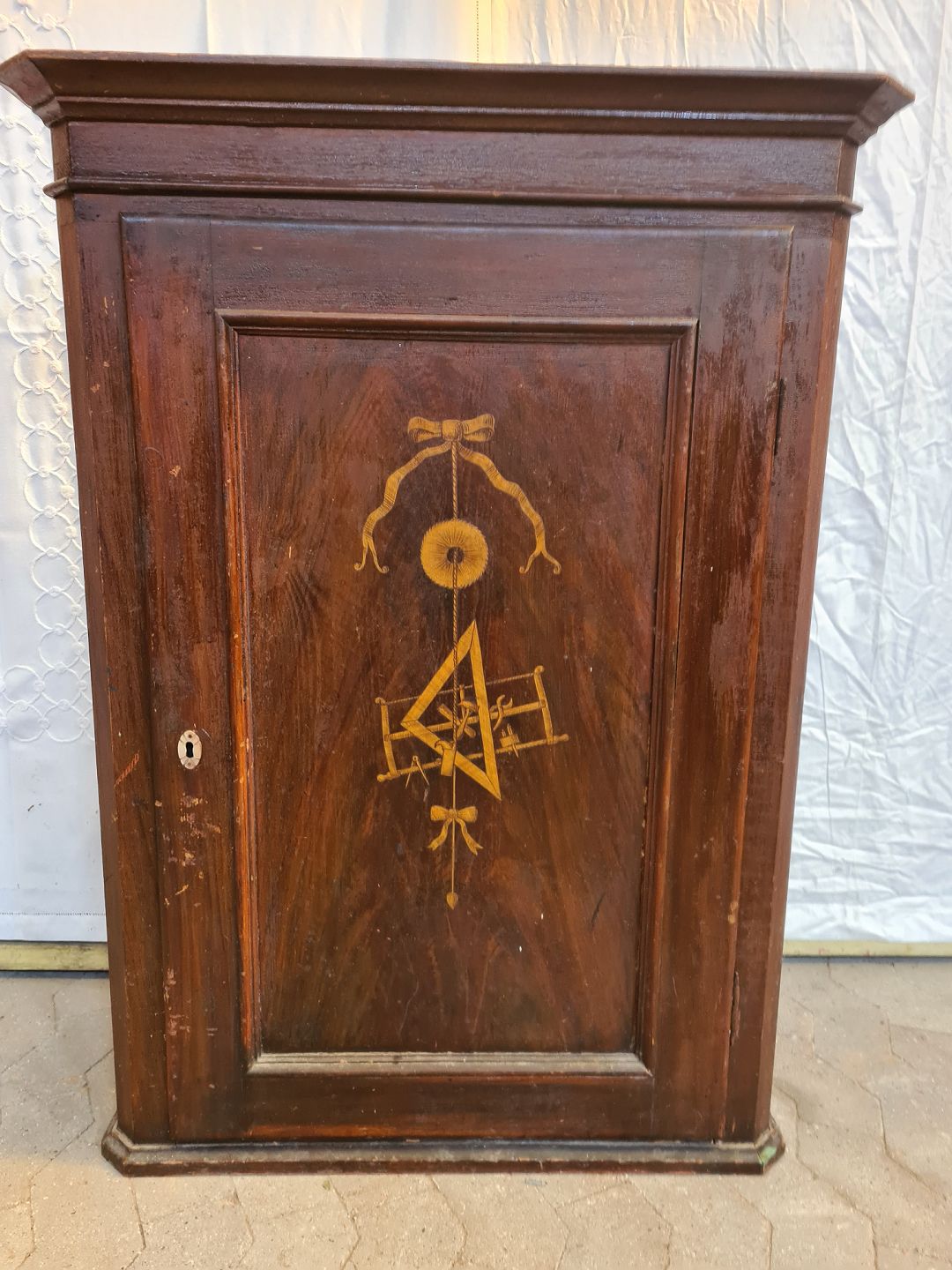 Malet vægskab i massivt fyrretræ, fra 1900erne.