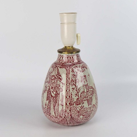 Lampefod i porcelæn og messing med motiv af de fire årstider i harlekinform udført i rød streg nr. 5173-244