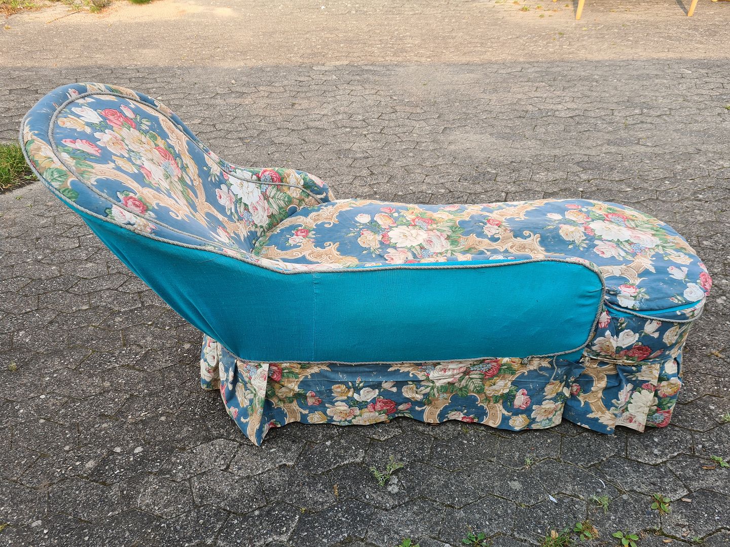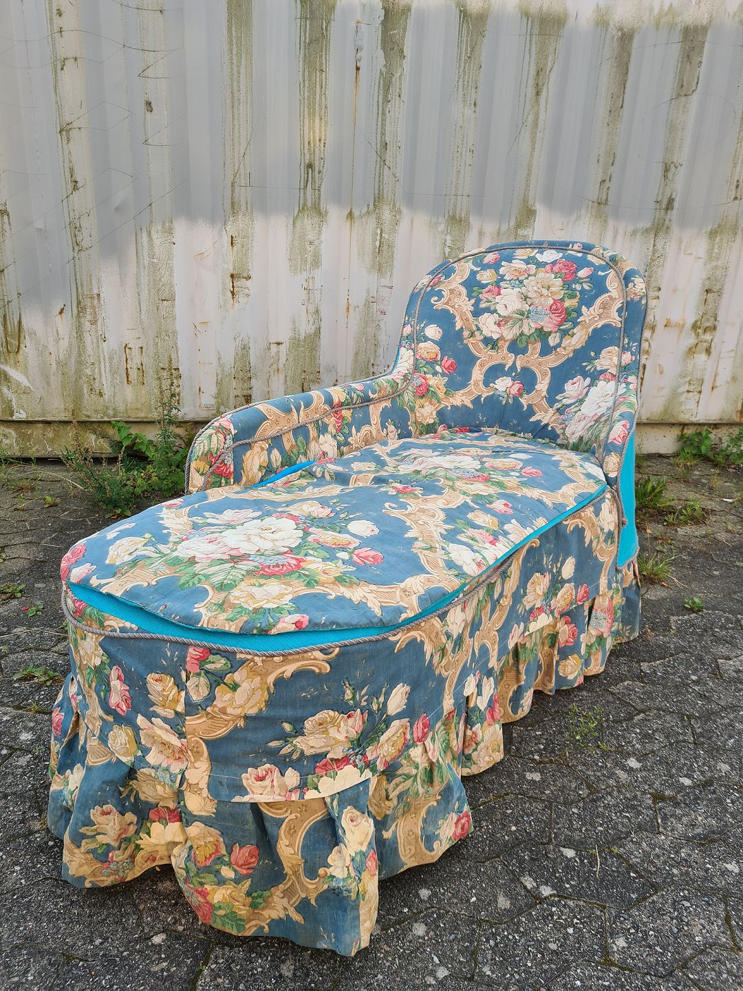 Betrækket er hjemmebetrukket og den har brugsspor.