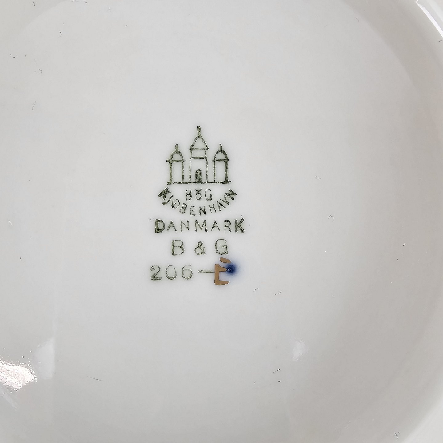 Åkjær er cremefarvet porcelæn med guldkant og mønster som ligner skæl. Lettere brugsspor kan forekomme