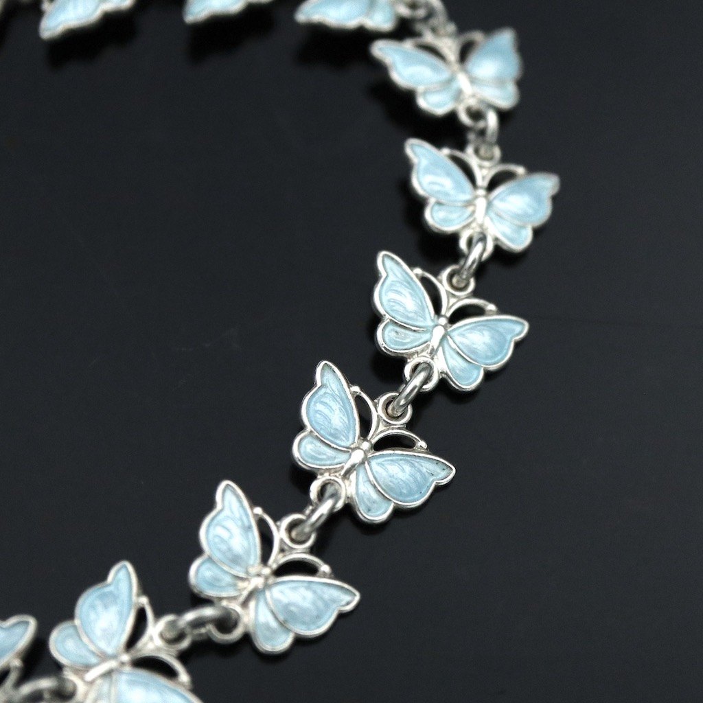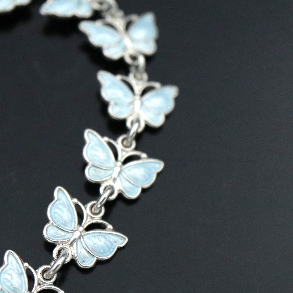Volmer Bahner. Armbånd i sterling sølv med lys blå emalje.