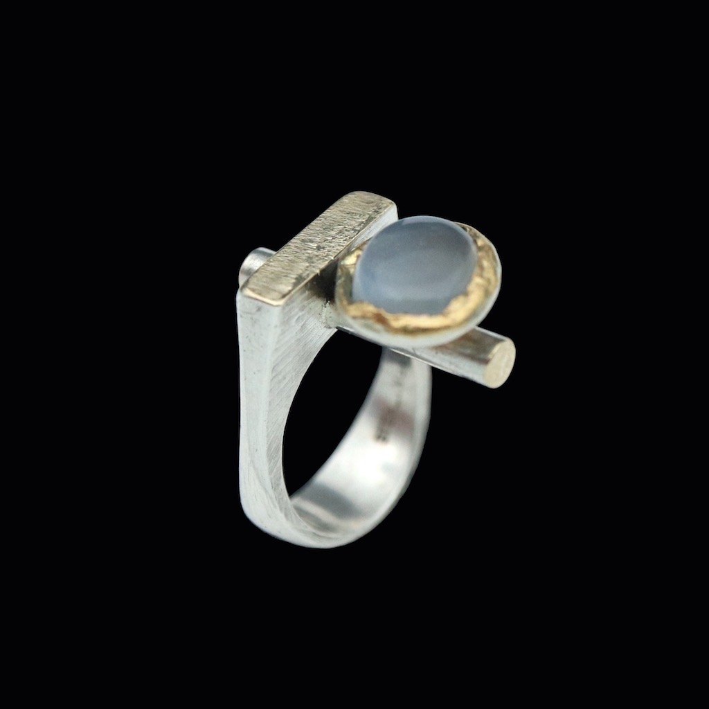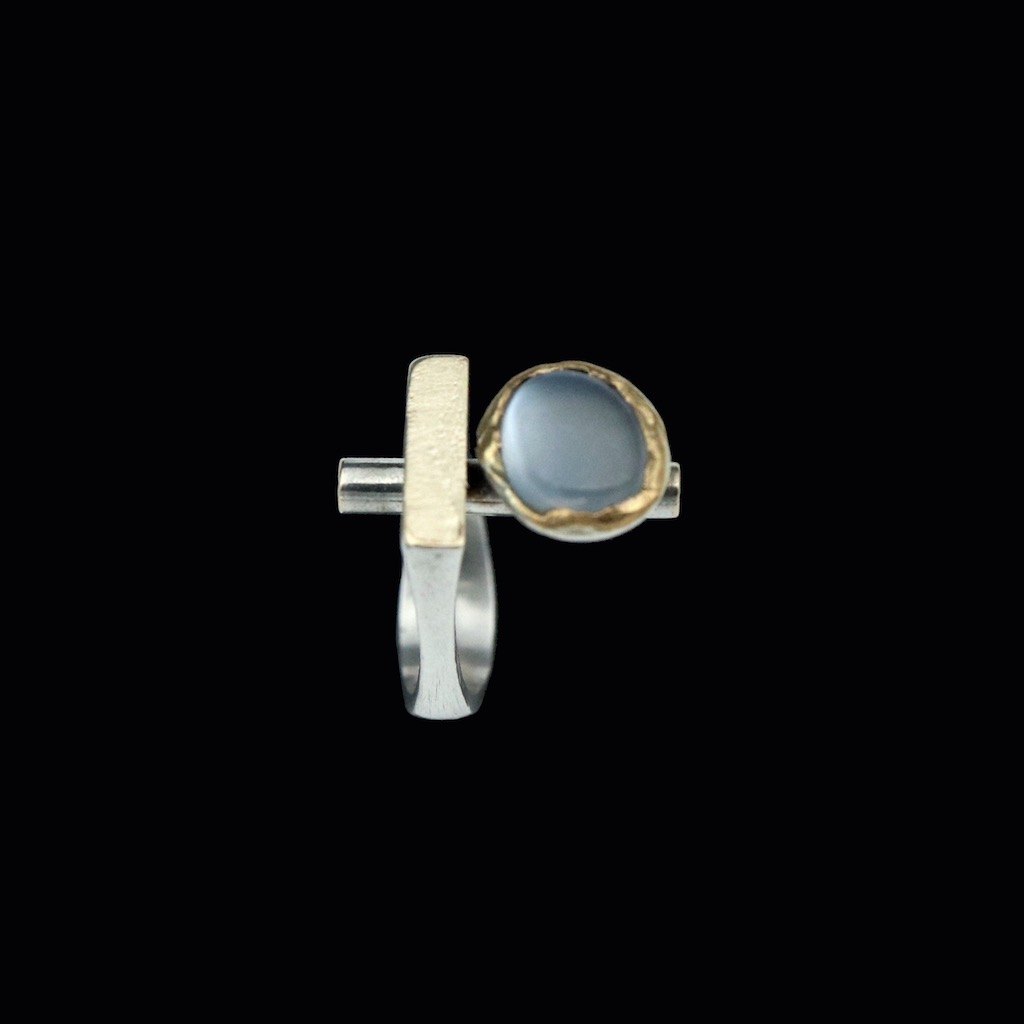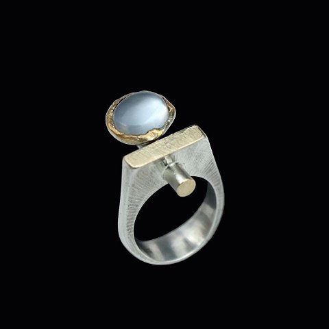 Ole Waldemar Jacobsen. Ring i Sterling sølv med 21k guld og månesten.