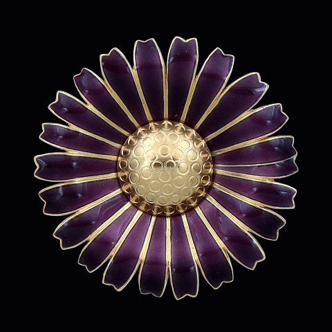A. Michelsen Marguerit / Daisy Broche i forgyldt sterling sølv med lilla emalje - 50mm.