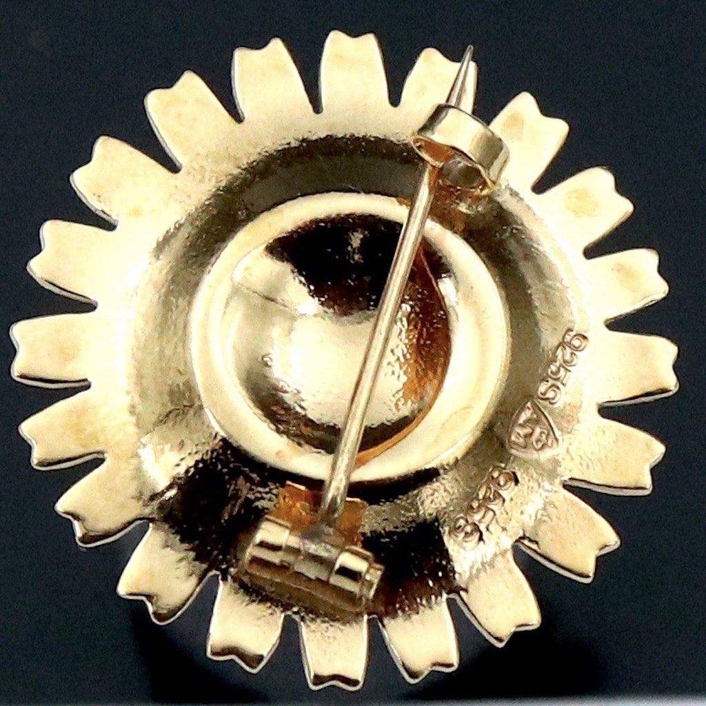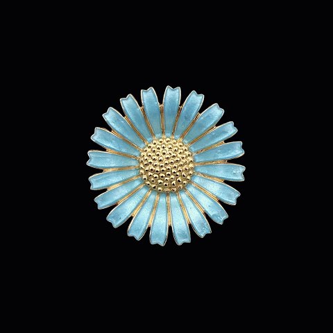 A. Michelsen Marguerit / Daisy Broche i forgyldt sterling sølv med turkis emalje - 33mm.