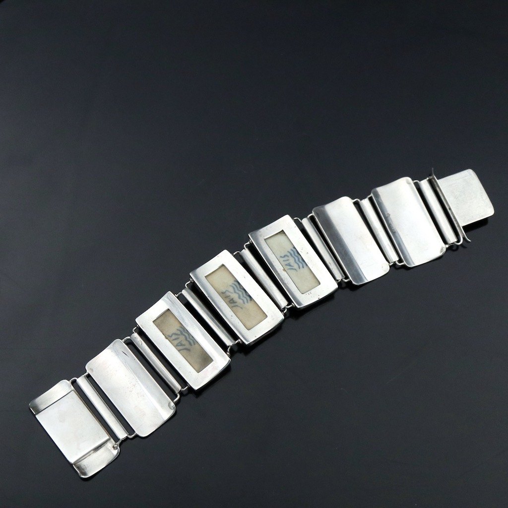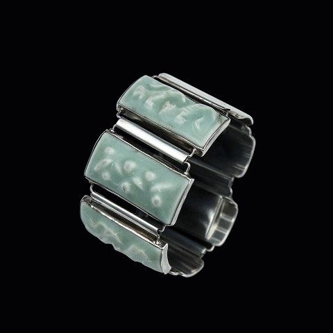 Jais Nielsen 1885-1961. Armbånd i sterling sølv med keramik med celadon glasur.