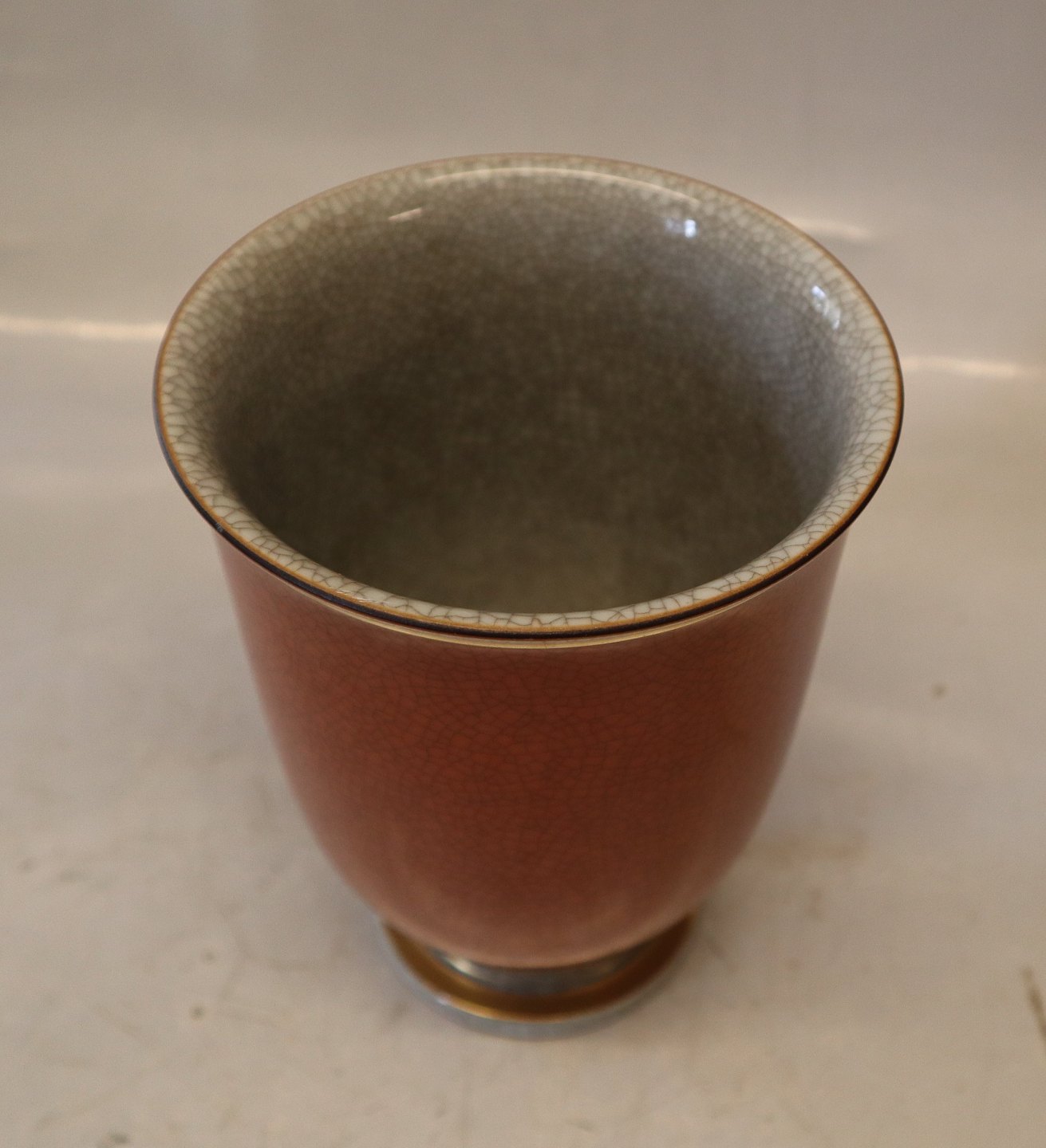 212-2731 Kgl. Vase 15.5 x 12 cm rød, guld & grå Kongelig Dansk Craquelé, Craquele
