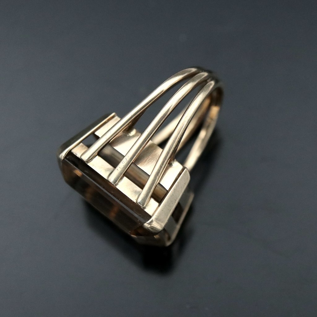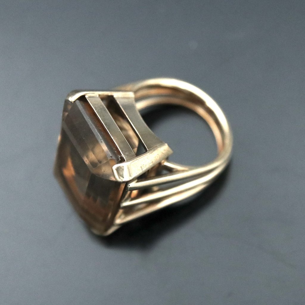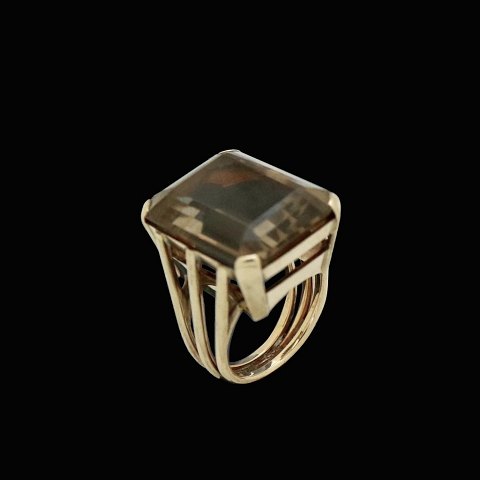 Ring i 14k guld med røgkvarts.Stemplet 585.