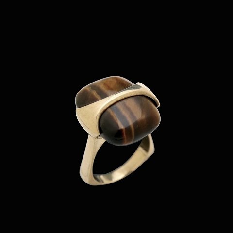 Poul Klarlund - Kbh. Ring i 18k guld tigerøje.