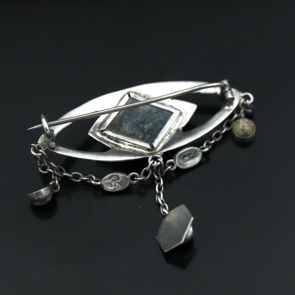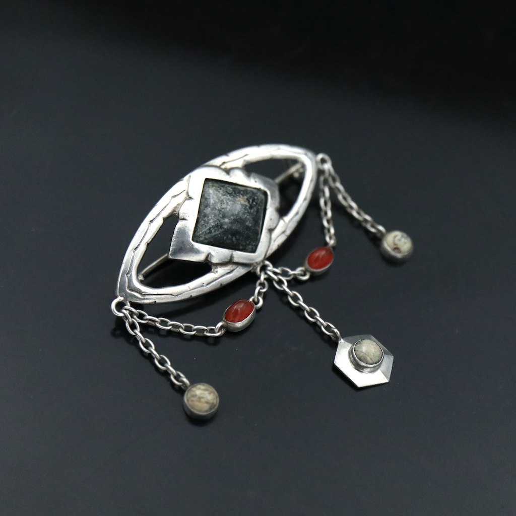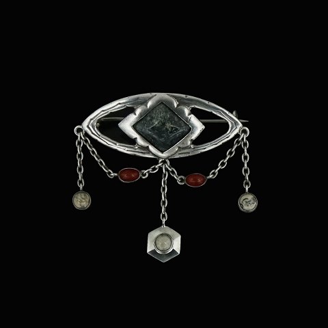 Mogens Ballin 1871-1914. Skønvirke Broche i sølv med sten.