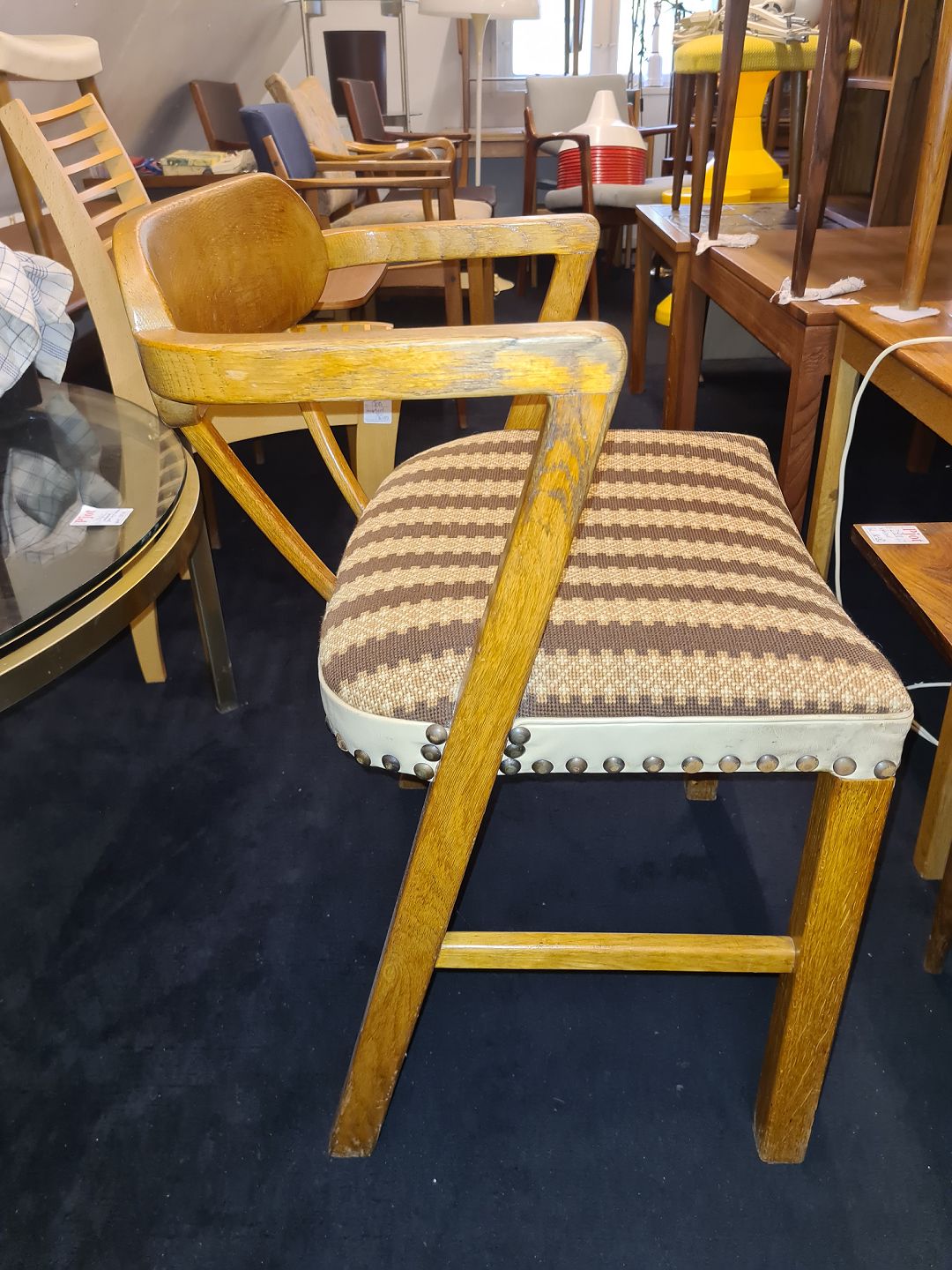 Dansk Snedkermester armstol fra 1950'erne I eg og med broderet sæde. Fremstår pæn og stabil uden nævneværdige brugsspor.