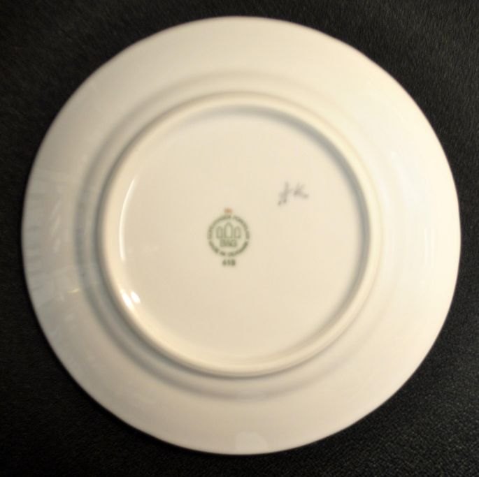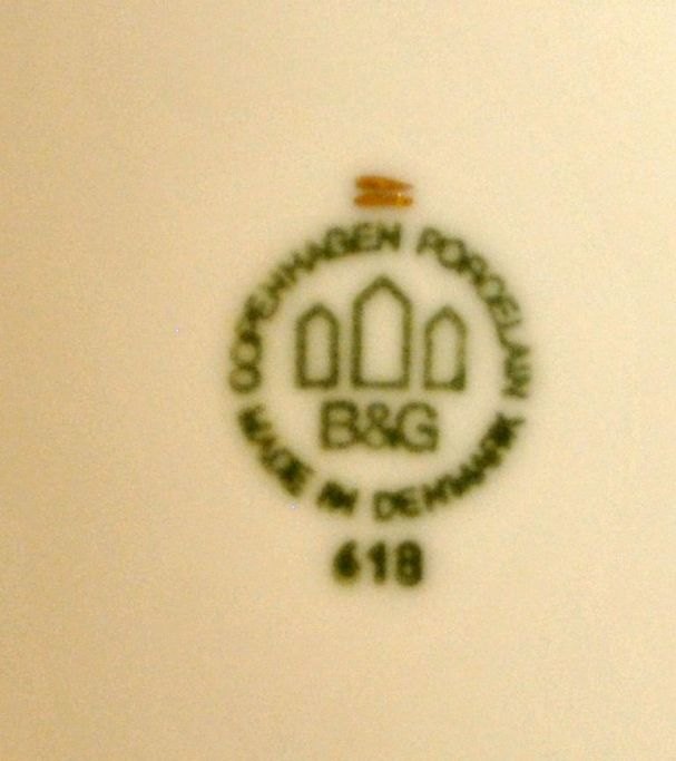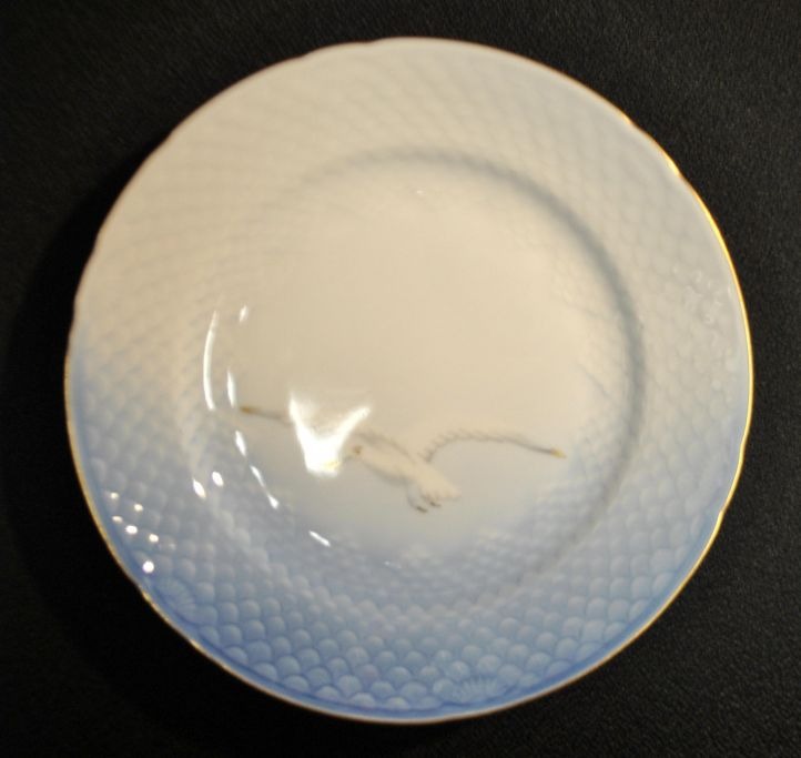 Bing & Grøndahl mågestel silde tallerken, 618, 20. årh. København, Danmark. Med guldkant. Stemplet. Dia.: 19,2 cm.