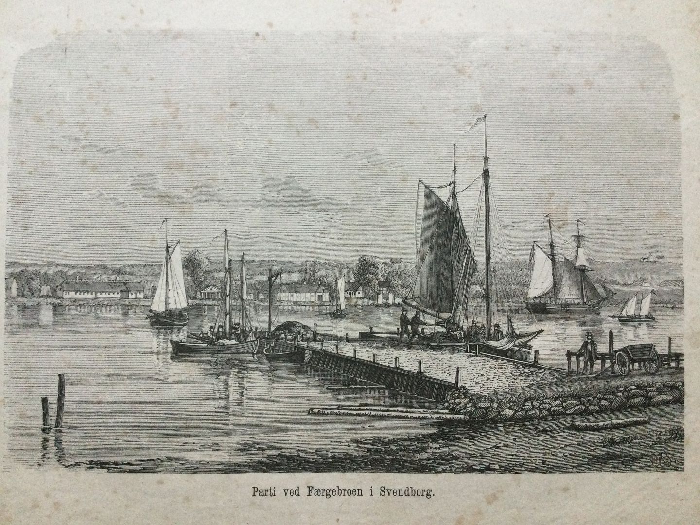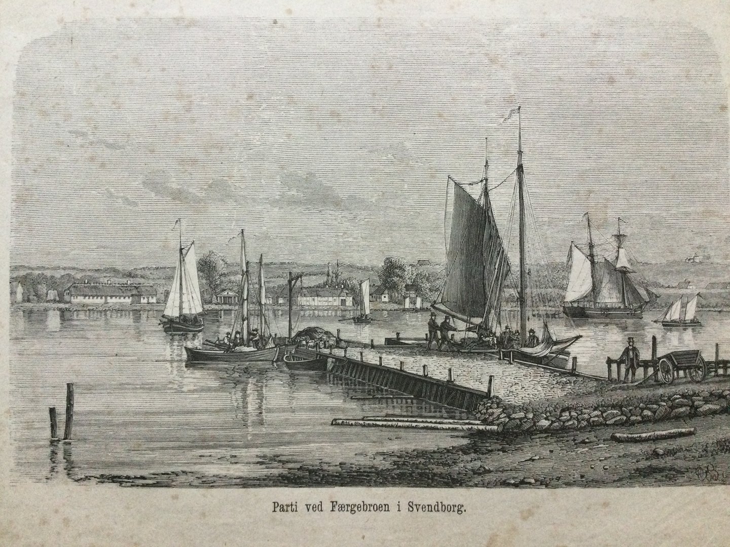 Xylografi af Carl Emil Baagøe - Vindeby overfartens leje i Svendborg.
