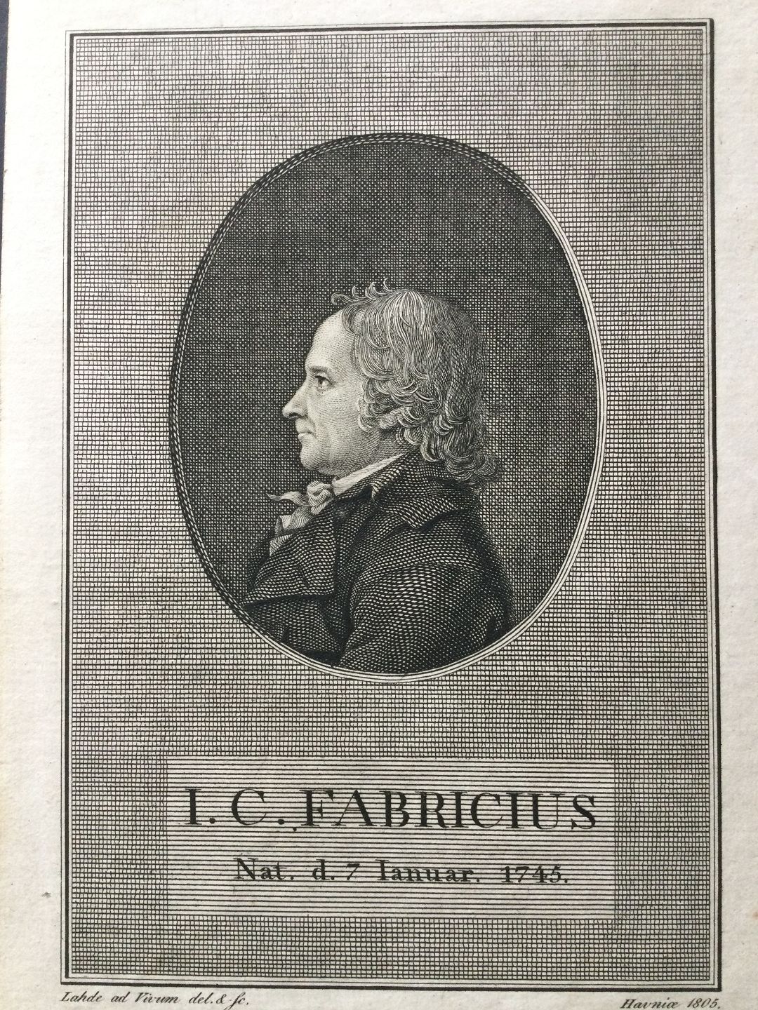 Kobberstik af G.L. Lahde 1805 - Portræt af Zoologen Johan Christian Fabricius.