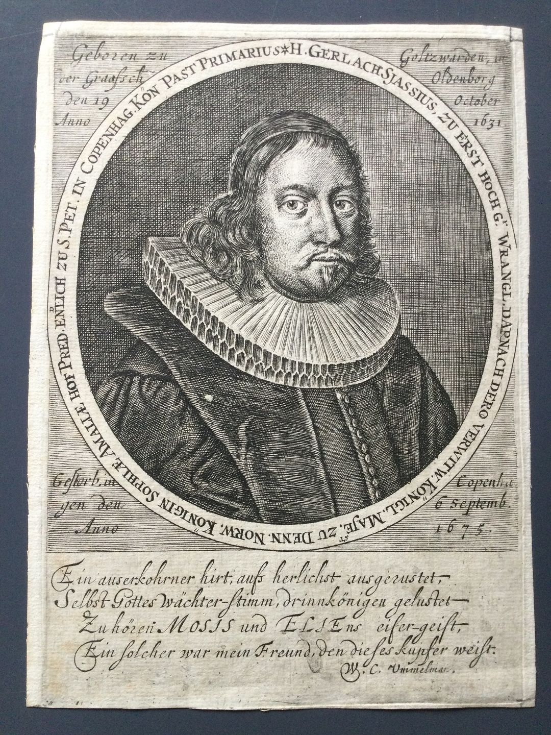 Kobberstik - Portræt af Præst ved St. Petri Kirke Gerlach Siassius.