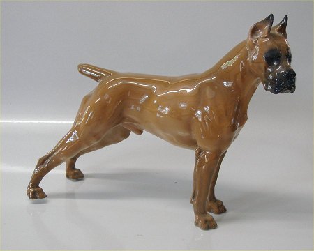 Rosenthal #1134 Stor Dank Hund, Great Dane, Grand Danois, stående, signeret af Kaerner, ca. 1956 H: 21; L: ca 24 cm I hel og fin stand