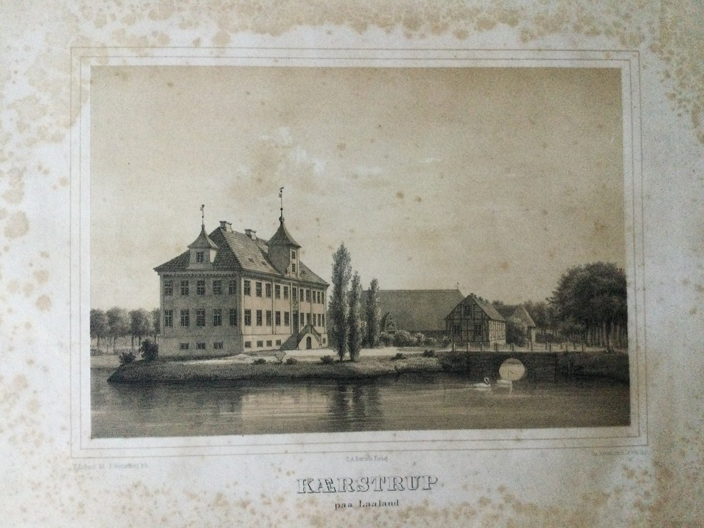 Litografi af Edward Westerberg - Kjærstrup Gods på Lolland ca. 1850.