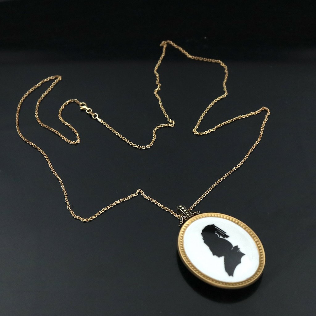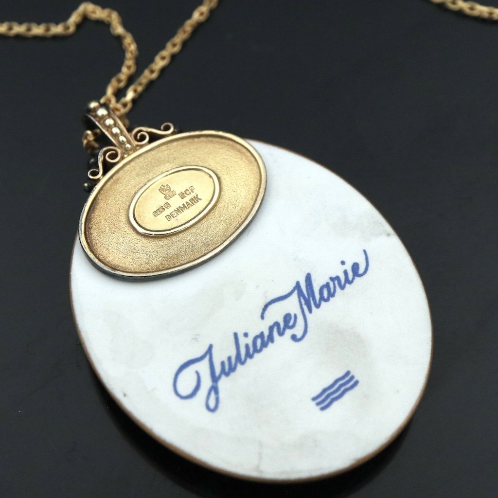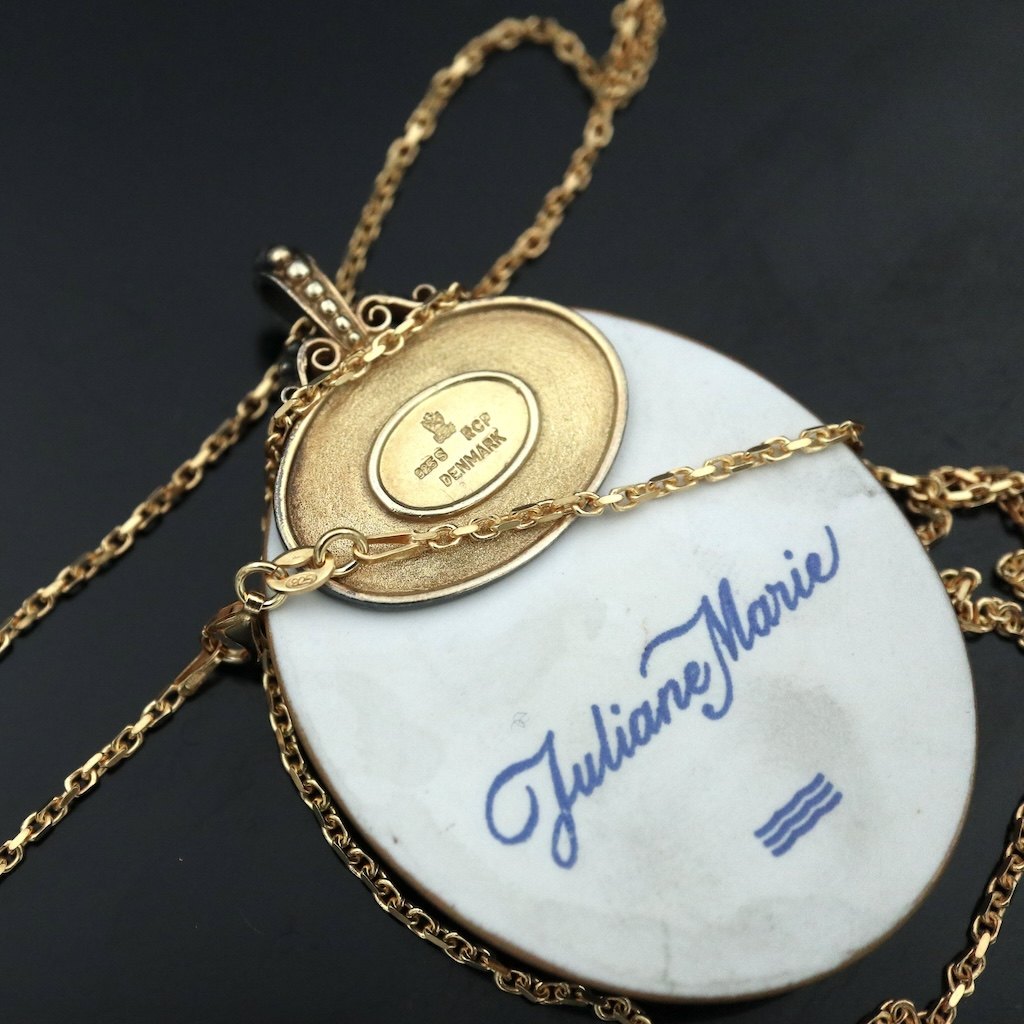 Royal Copenhagen. Vedhæng i porcelæn med forgyldt sterlingsølv - Juliane Marie.