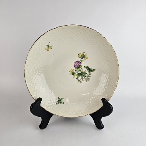 Dyb tallerken af porcelæn fra stellet Hermod, også kendt som Kløverblomst. Nr 44.