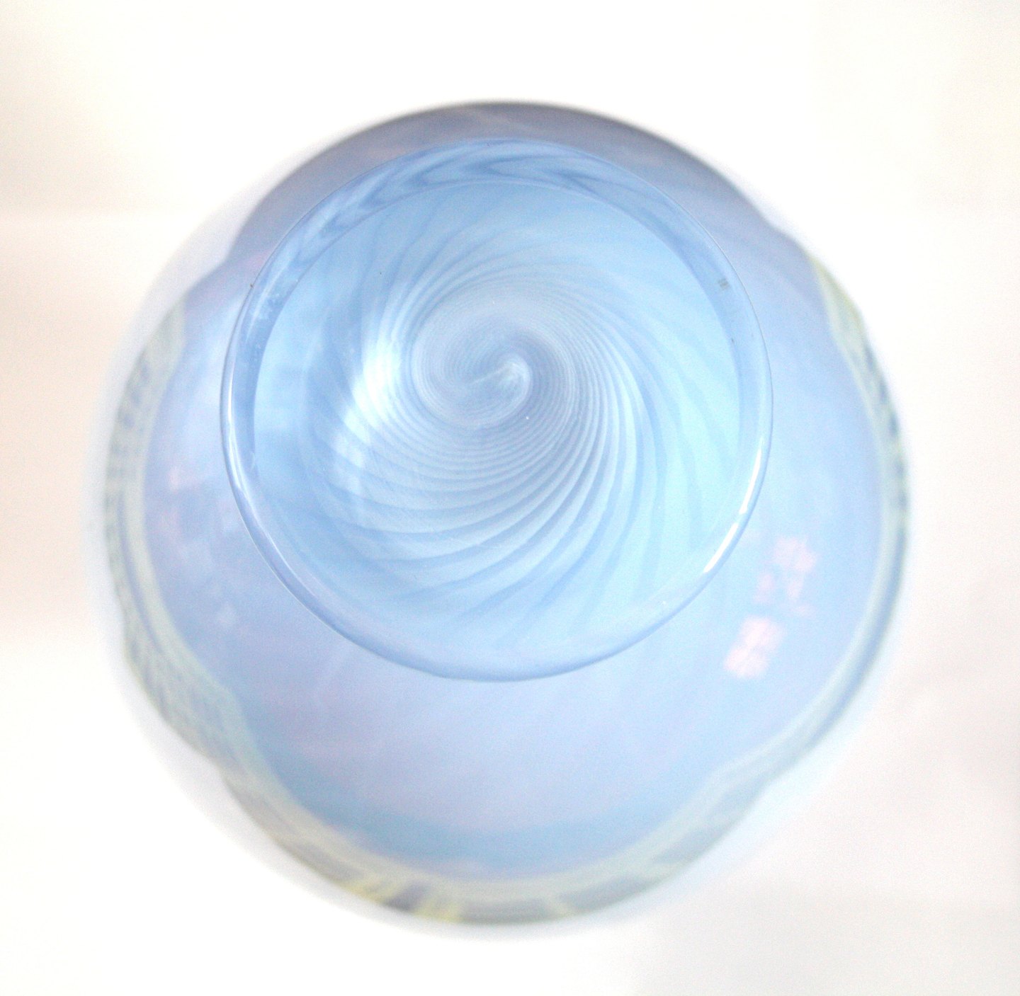 Holmegaard, Spring serie i transparent isblå med skrå striber med klar fod. Designet af Michael Bang i 2003. Serien er ikke signeret.
