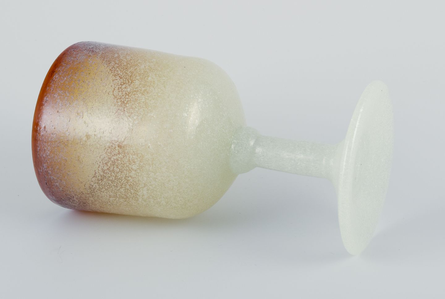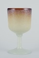 Et sæt på fem rødvinsglas, kunstglas. Mundblæst, med bobler i glasmassen.