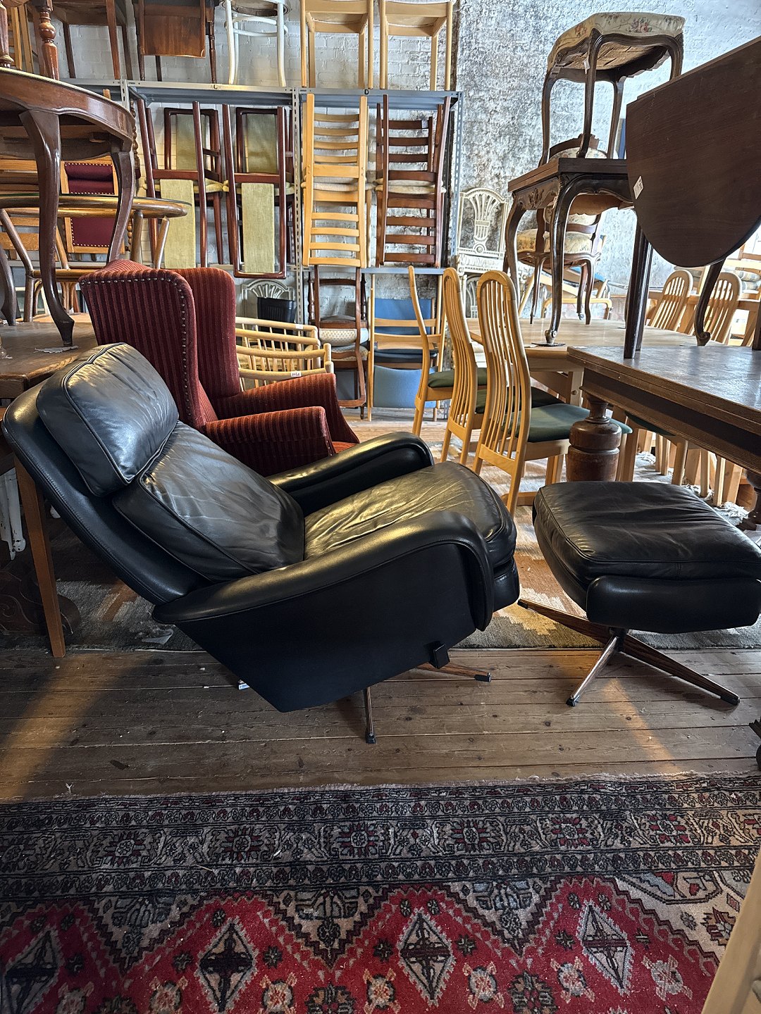 Læder lænestol med fodskammel, fra 1990erne.