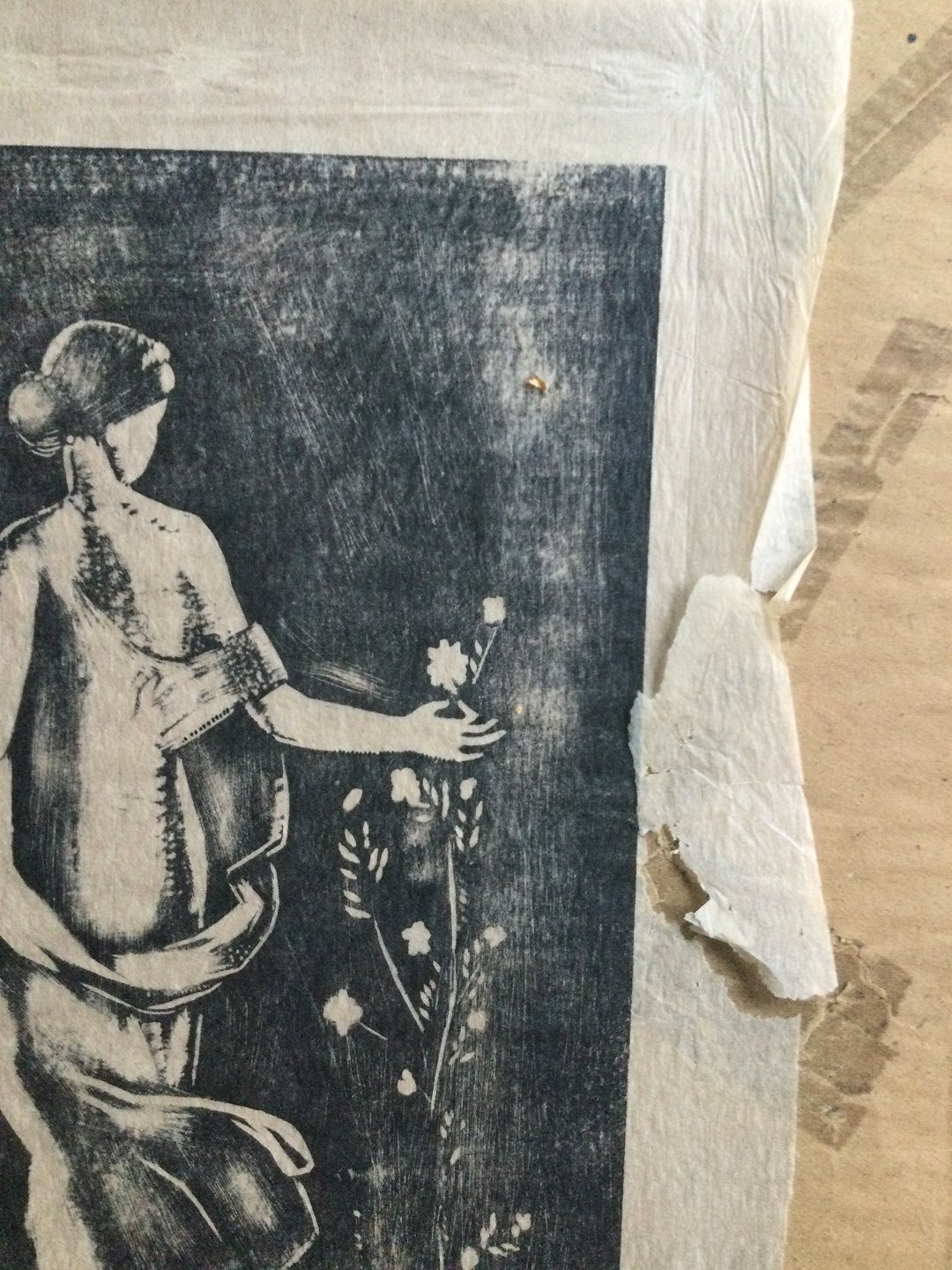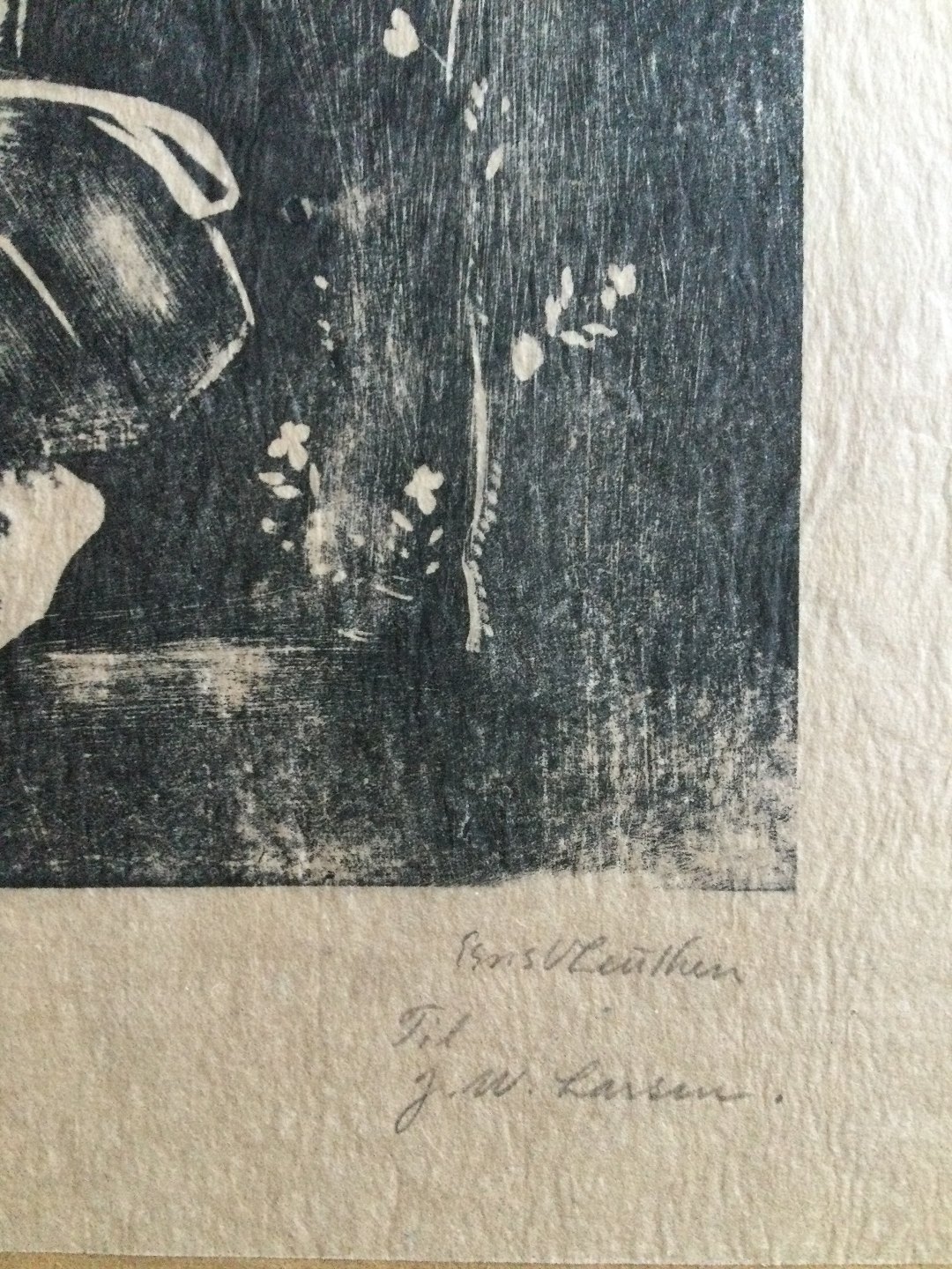 Træsnit af Ernst Zeuthen - Blomstersamlersken "Flora"
