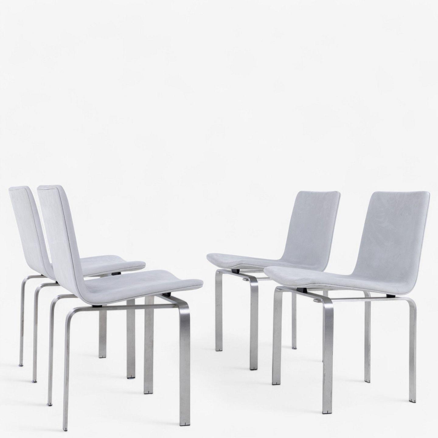 JH 3 - Sæt á 4 spisestuestole med stel i stål og sæde i 'Royal Nubuck'-læder.
