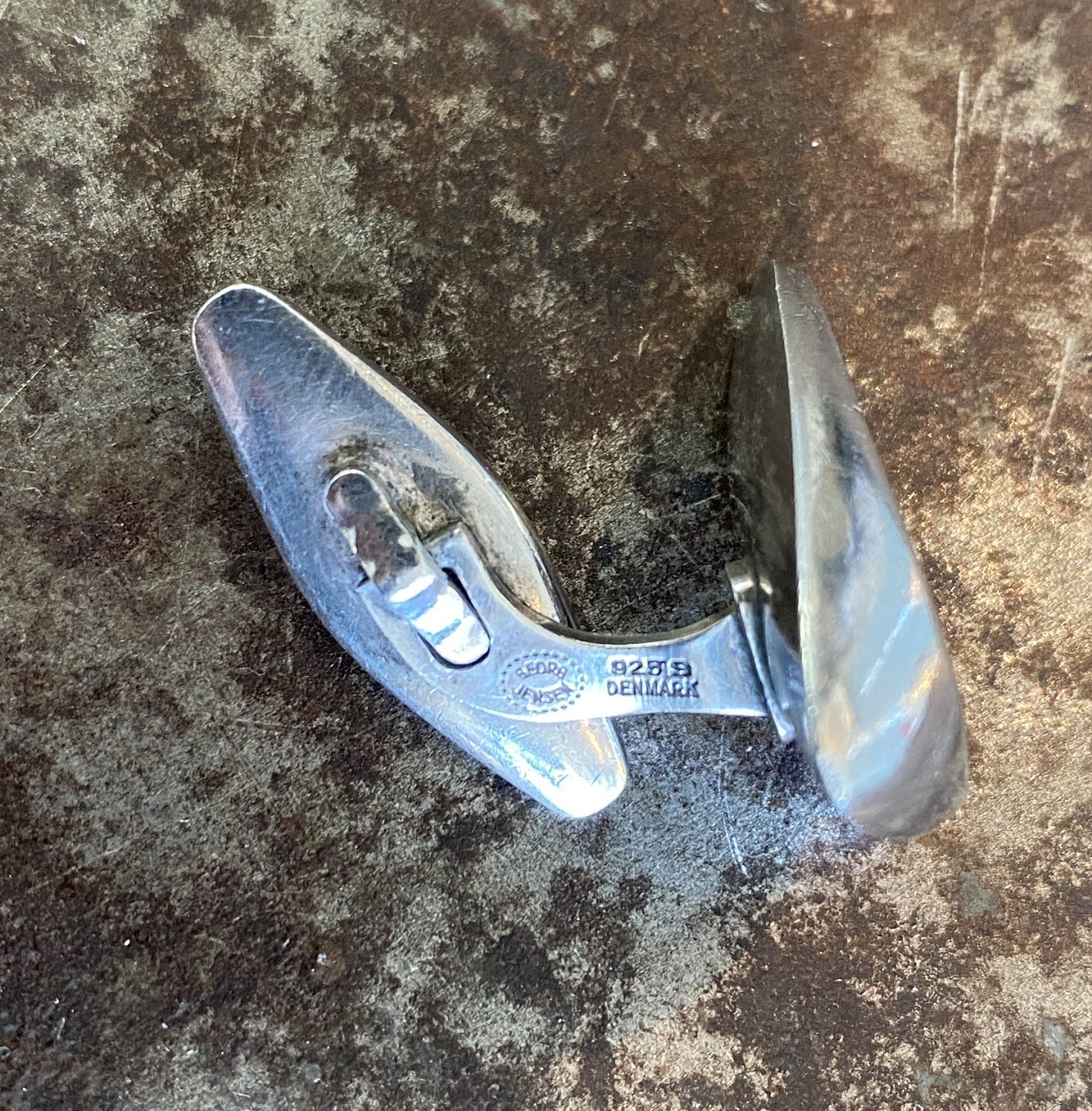 En enkelt manchet knap design no 88 tegnet af Henning Koppel for Georg Jensen i Sterling sølv.