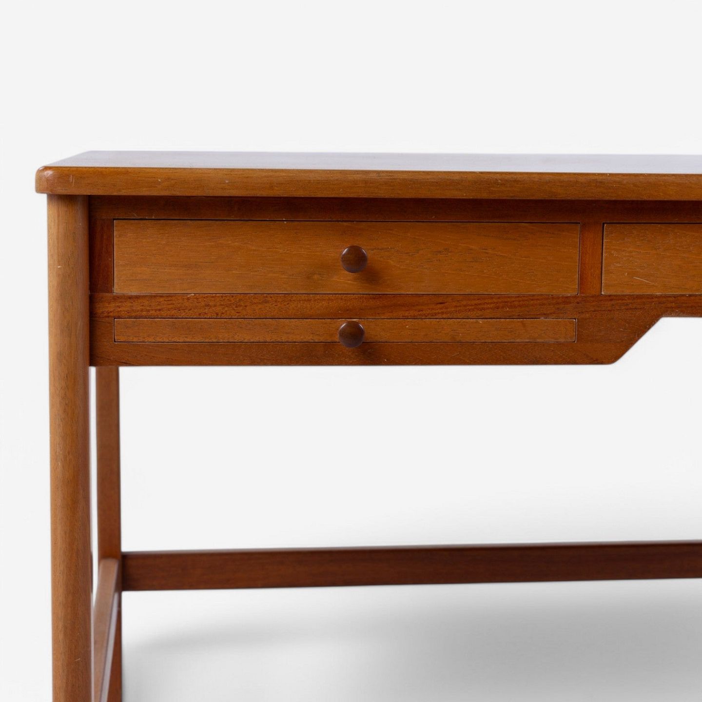 Skrivebord i mahogni med 5 skuffer.