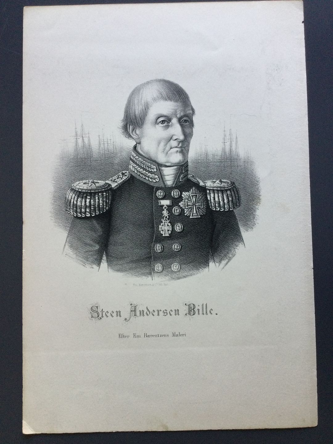 Portræt af Admiral og Gehejmeråd Steen Andersen Bille - litografi af Em. Bærentzen.