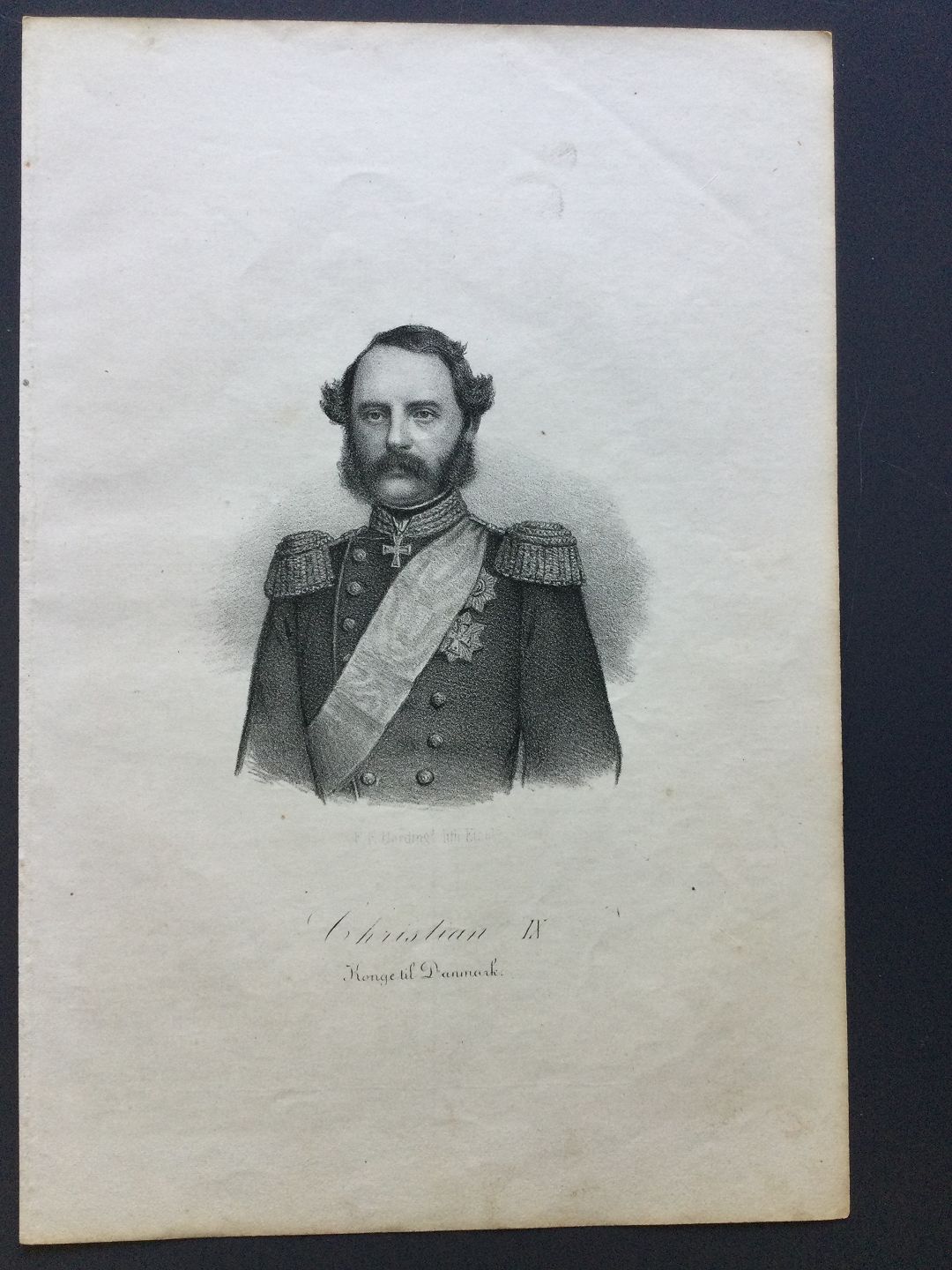 Litografi af F.E. Bording - Portræt af HM Kong Christian IX af Danmark.